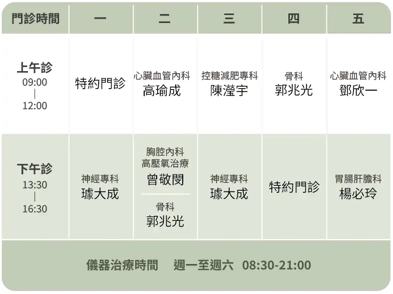 馬偕骨科主任級權威醫師郭兆光於2025年7月1日起特別門診: 每週二下午及週四上午 推廣骨骼保健 專治關節酸痛 運動傷害 五十肩,媽媽手,扳機指等各類骨科疾病。 敬請預約就診。
